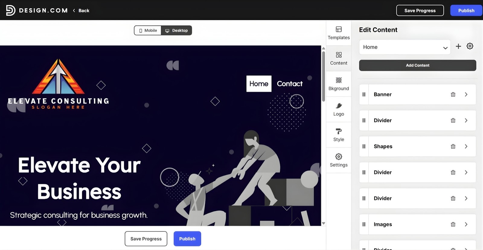 All Design.com websites are automatically optimized for mobile, tablet, and desktop. The platform also handles the publishing. Once you’ve finished customizing your website, you can already go online with just a single click. It’s perfect for entrepreneurs, small businesses, and freelancers who need a professional online presence fast.