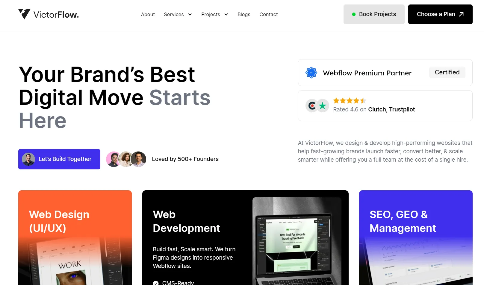 - USP: VictorFlow focuses on Webflow websites built for speed, SEO, and conversions, not just visuals. The agency combines design precision with growth-driven strategy.