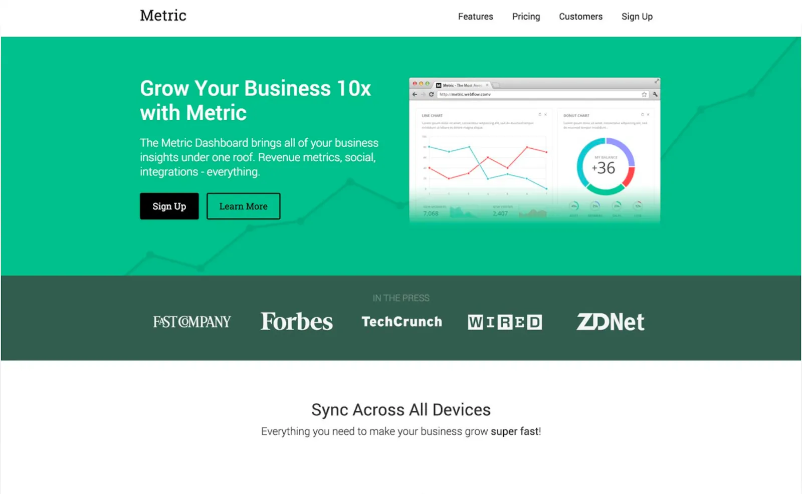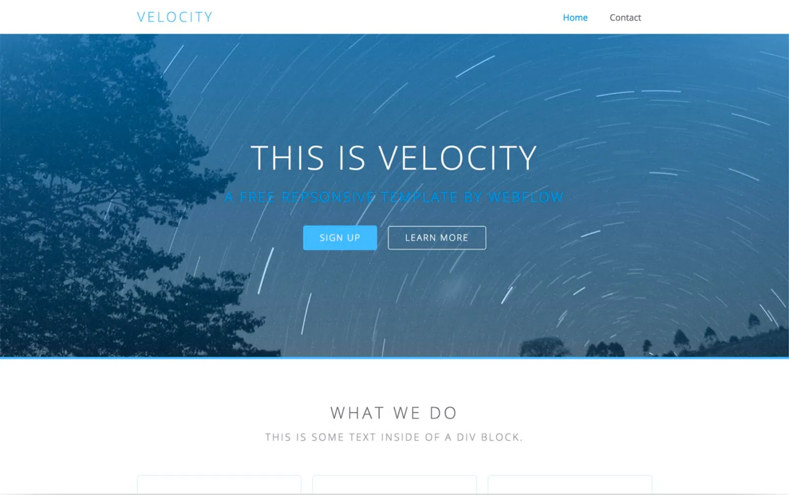 Description: The default template by Webflow is a great starting point for those who want to experiment for free.