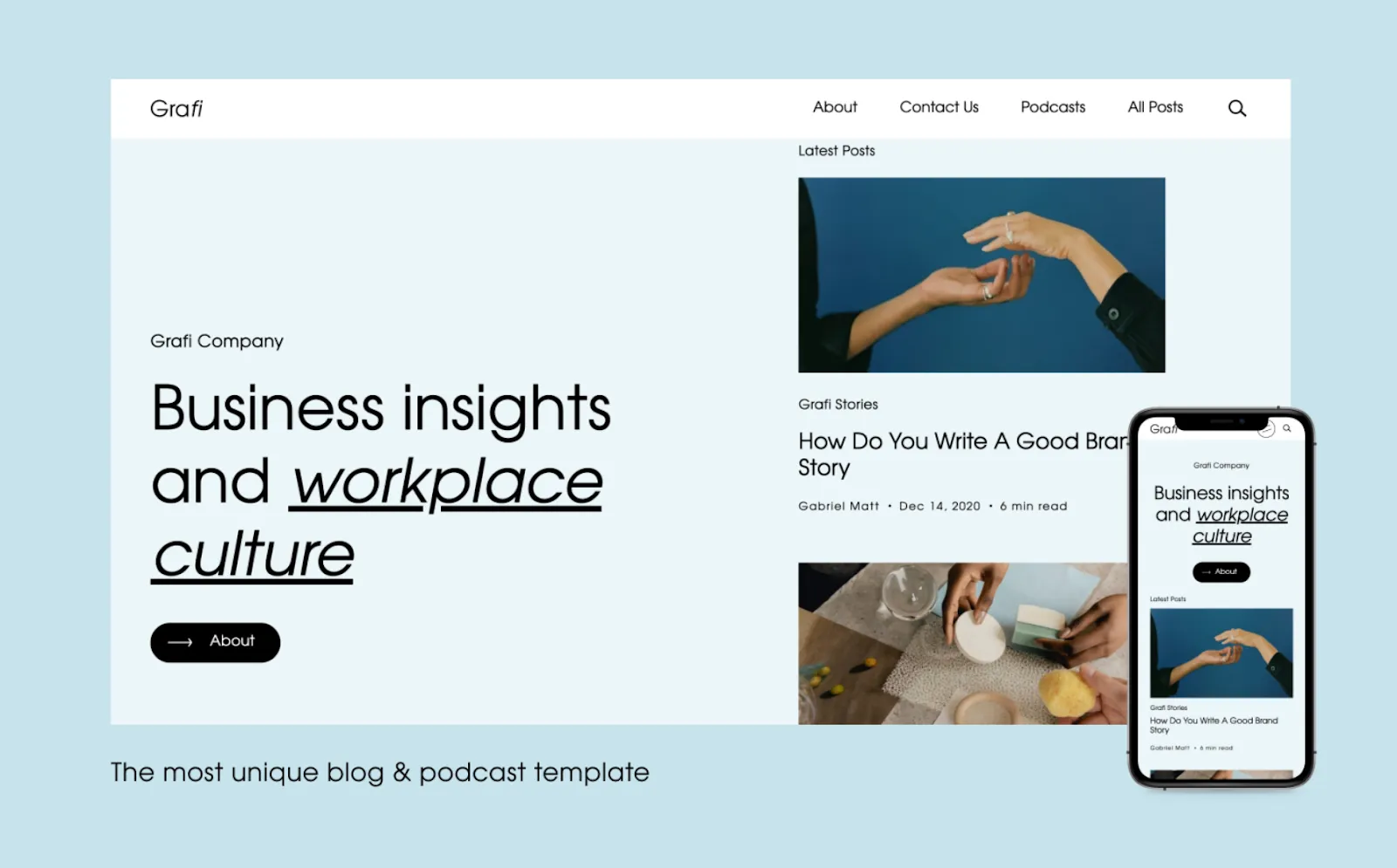 Description: A template offering a unique take on publishing podcasts, blogs, and stories.