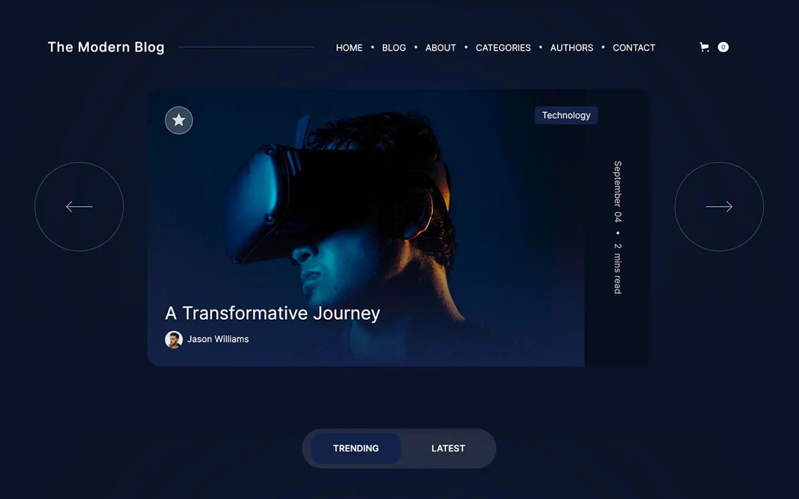 Description: A free and modern blog template that offers a scrollable blog list and a great blog post page.