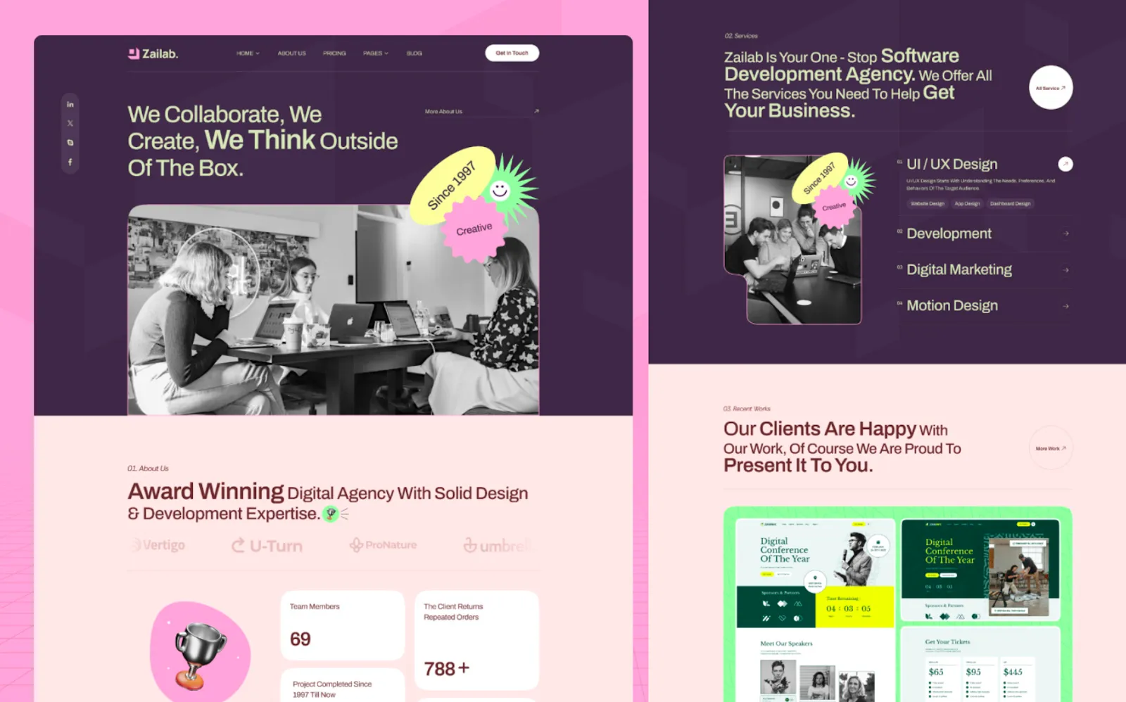 Description: A clean and modern template for a digital agency. Easy to customize, and with Figma file included.
