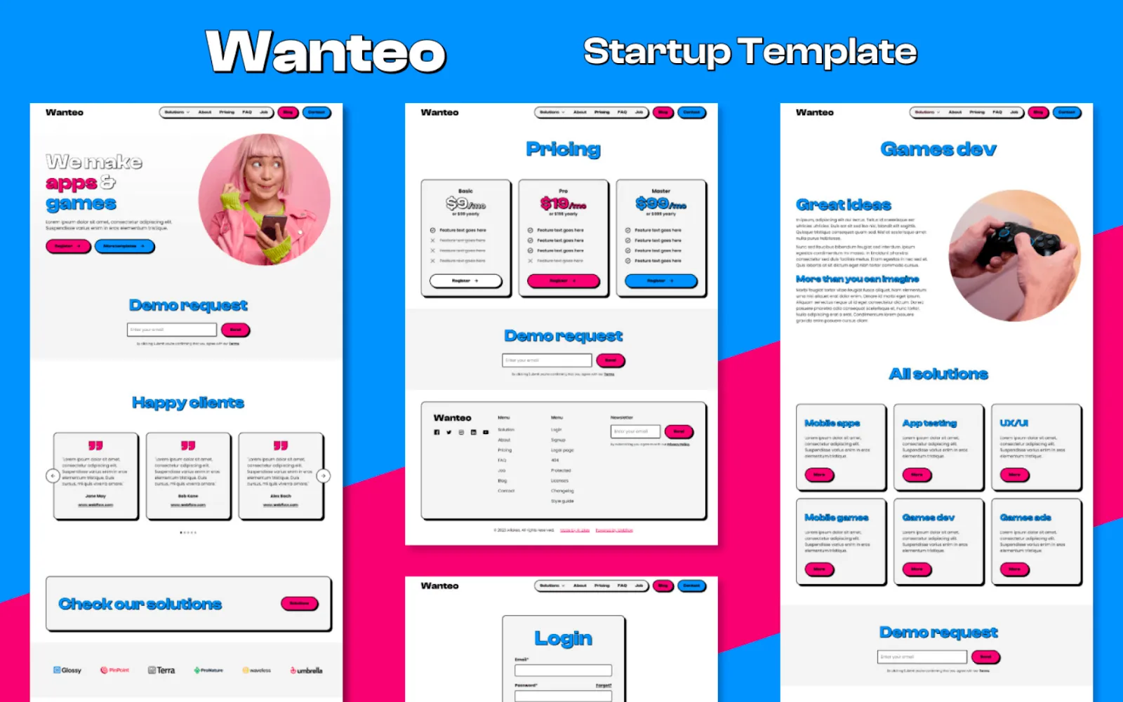 Description: A modern, responsive, and easily editable template inspired by the latest design trends. Perfect for startups, but also agencies, game websites, and more.