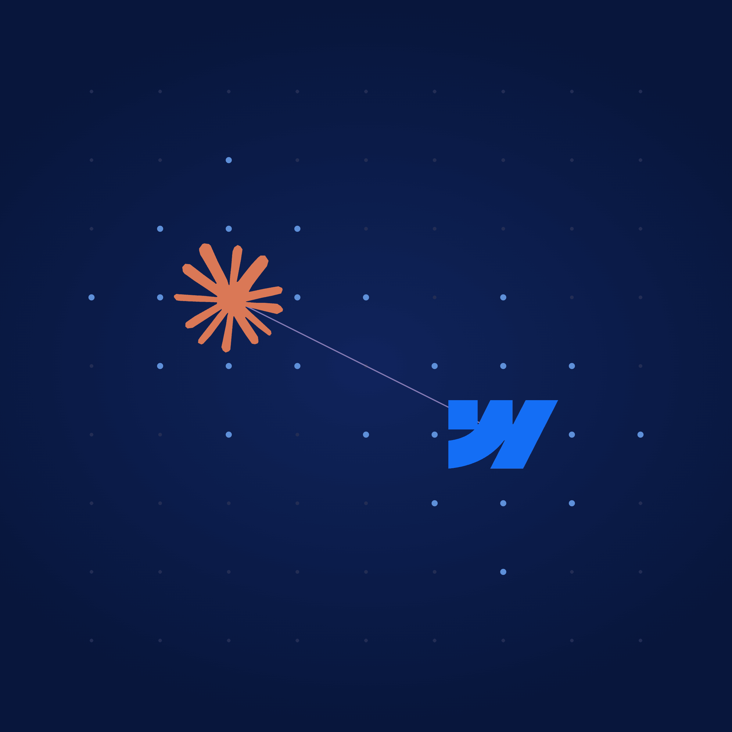 - Connection layer: Webflow's custom code injection, API calls from the frontend, webhook triggers for backend processes
