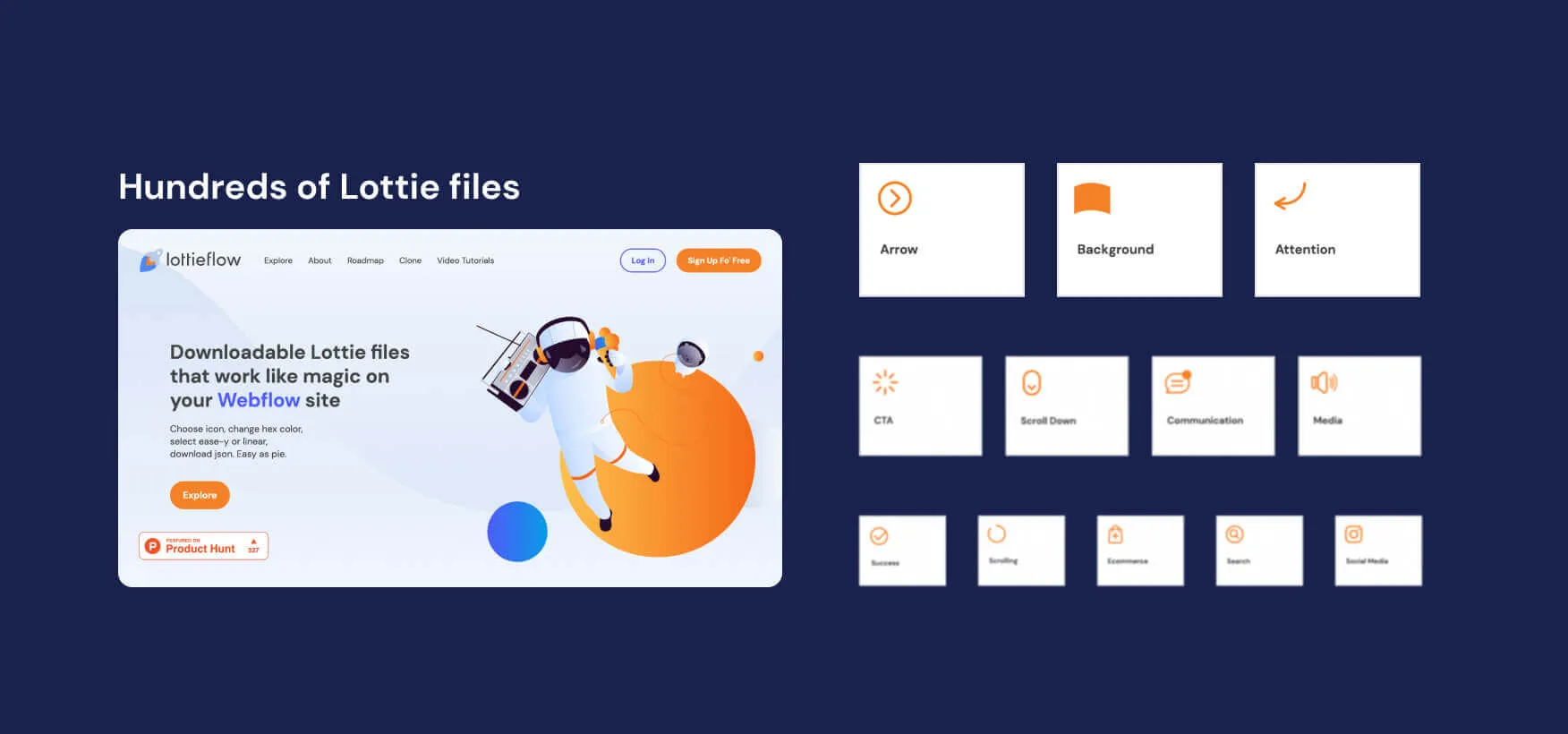 Animations and interactions are an important part of Webflow, and Lottieflow offers Lottie files that are compatible with your Webflow site. In other words, you can enrich your site with lightweight animations designed with Webflow in mind. Downloading and using them on the site is quick and easy. The best part is that all of these animations are available absolutely free of charge.