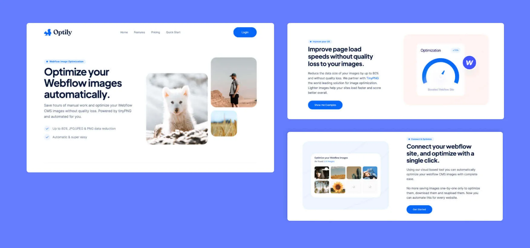 Optily is a simple tool that can help you optimize your Webflow CMS images quickly without affecting their quality. The entire process is almost entirely automatic and can reduce image data use by up to 80%. It’s a great piece of software for anyone who uses a lot of images on their Webflow site and can save you hours of manual work.