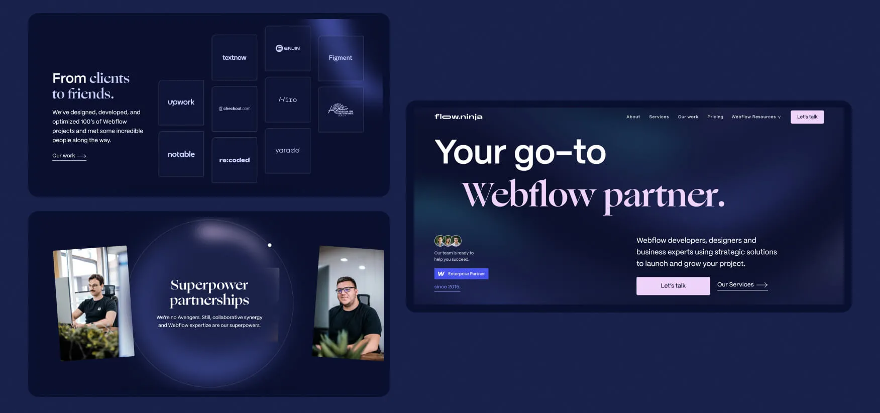 Our team has also published some work on Webflow Showcase, and here’s a quick overview:
