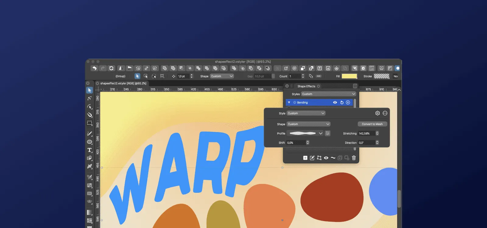 - Gradient mesh tool that enables creating gradient effects and multi-colored designs