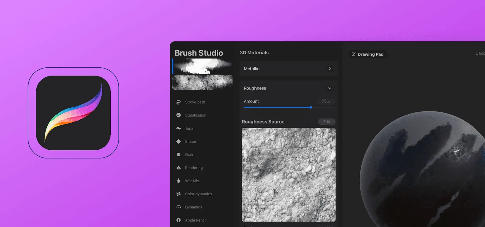 - Extensive brush libraries mimicking traditional media and artistic styles.