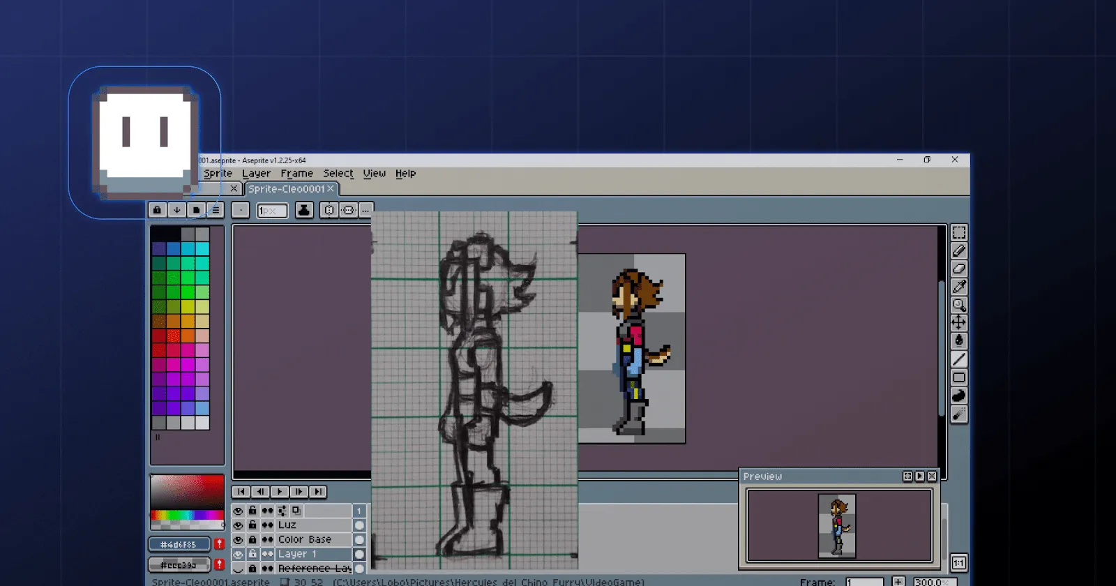 - Create game sprites and animations with frame-by-frame editing and onion skinning.