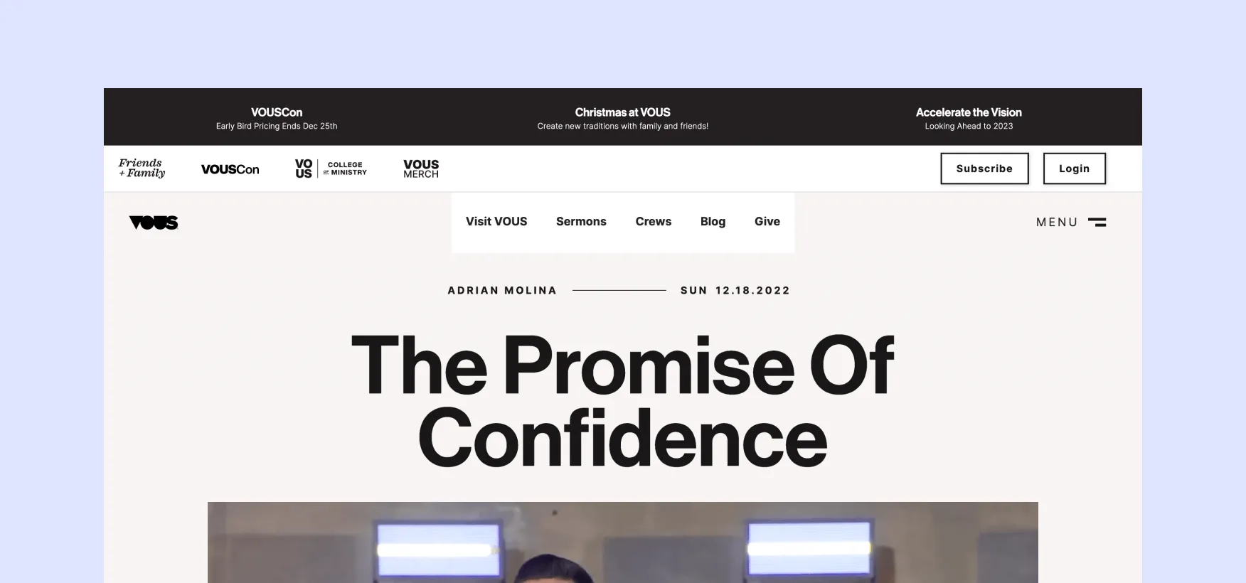 VOUS Church is a church located in Downtown Miami, and its website is not a standard website for this type of organization. The design is nothing short of incredible, making VOUS Church stand out from the pack, showcasing its events, operations, beliefs, and more.