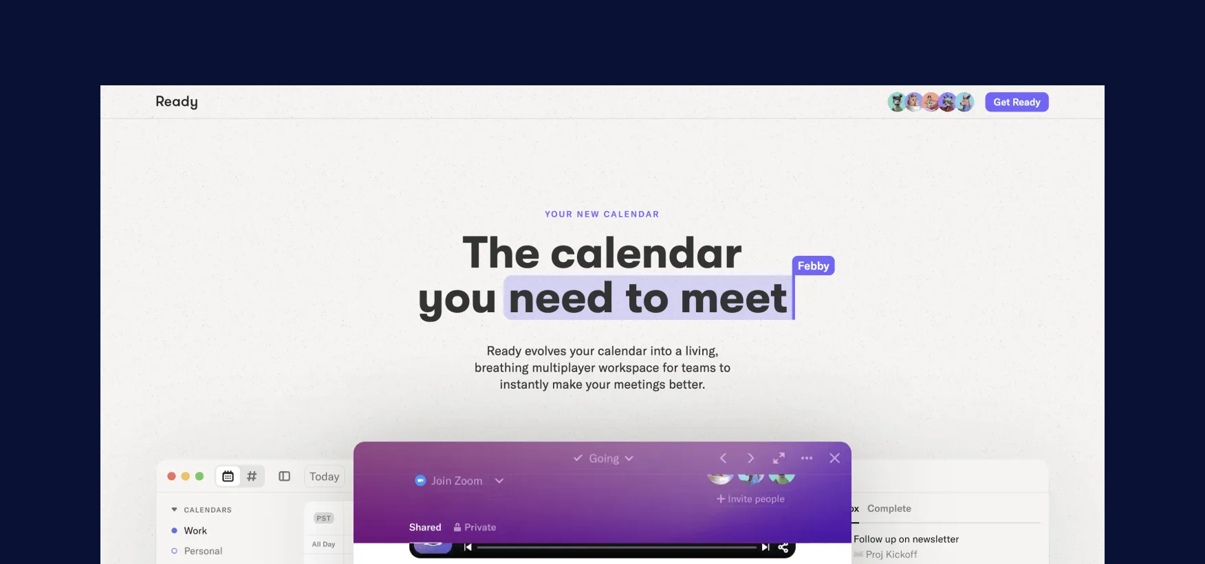 Ready offers a live calendar that works as a multiplayer workspace, allowing teams to better organize and schedule their work.