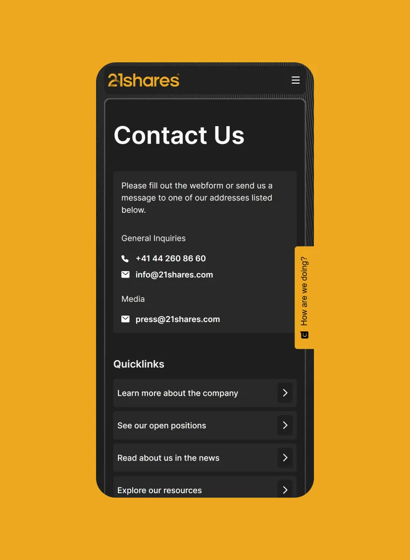 - The migration to Webflow empowered 21.co to operate with agility, setting a new standard for financial asset websites.