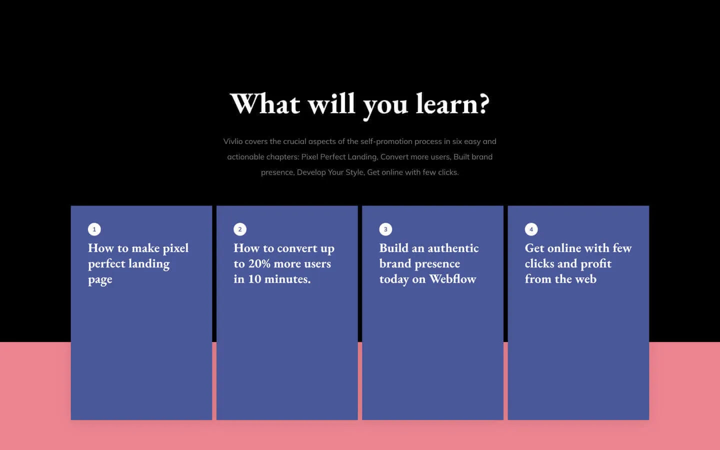 Vivlio is a Webflow template for anyone who sells books, online courses, and more. Get your template now!